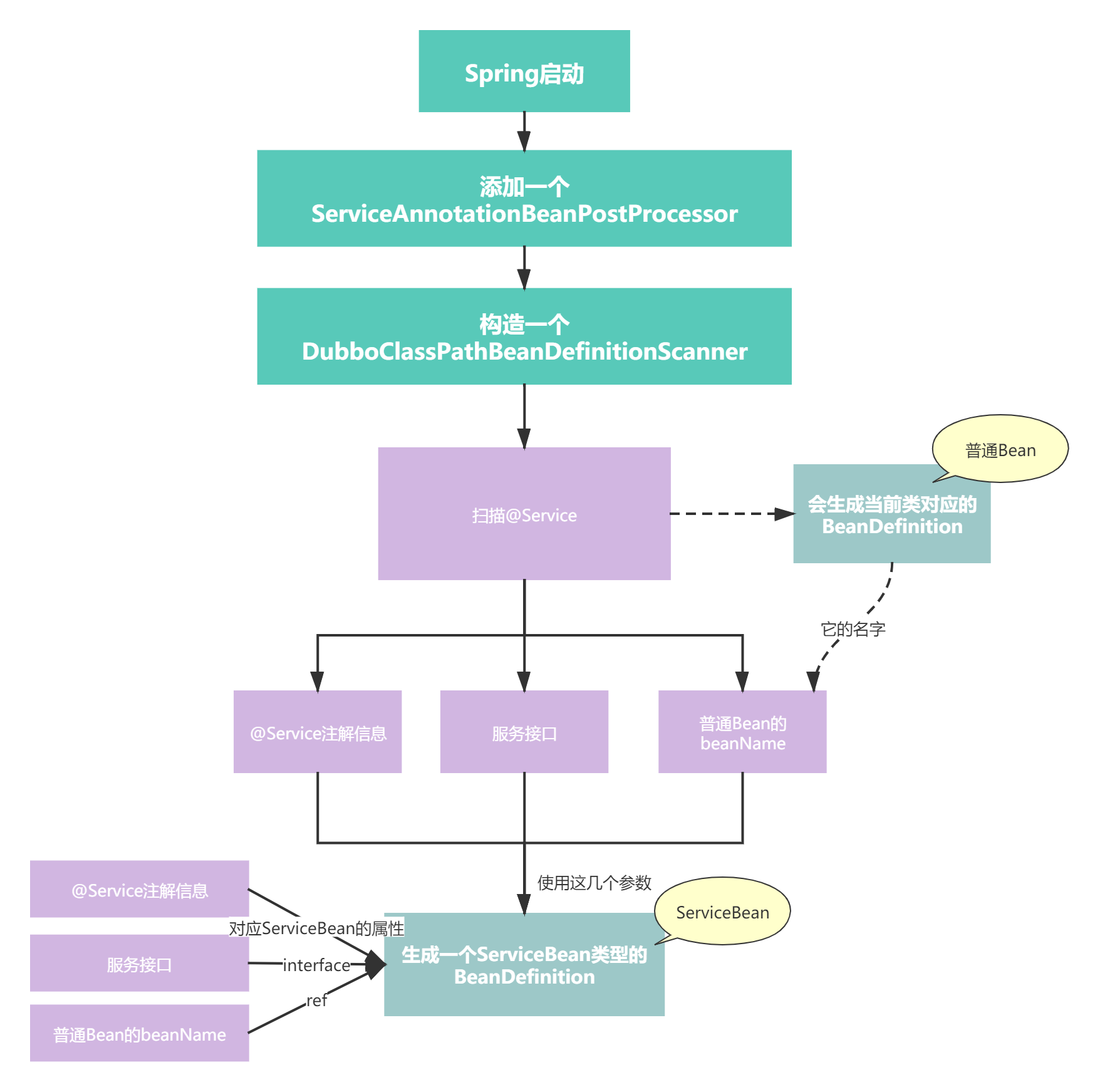 ServiceAnnotationBeanPostProcessor是一个BeanDefinitionRegistryPostProcessor,是用来注册BeanDefinition的。这个类的名字起的不太好。
