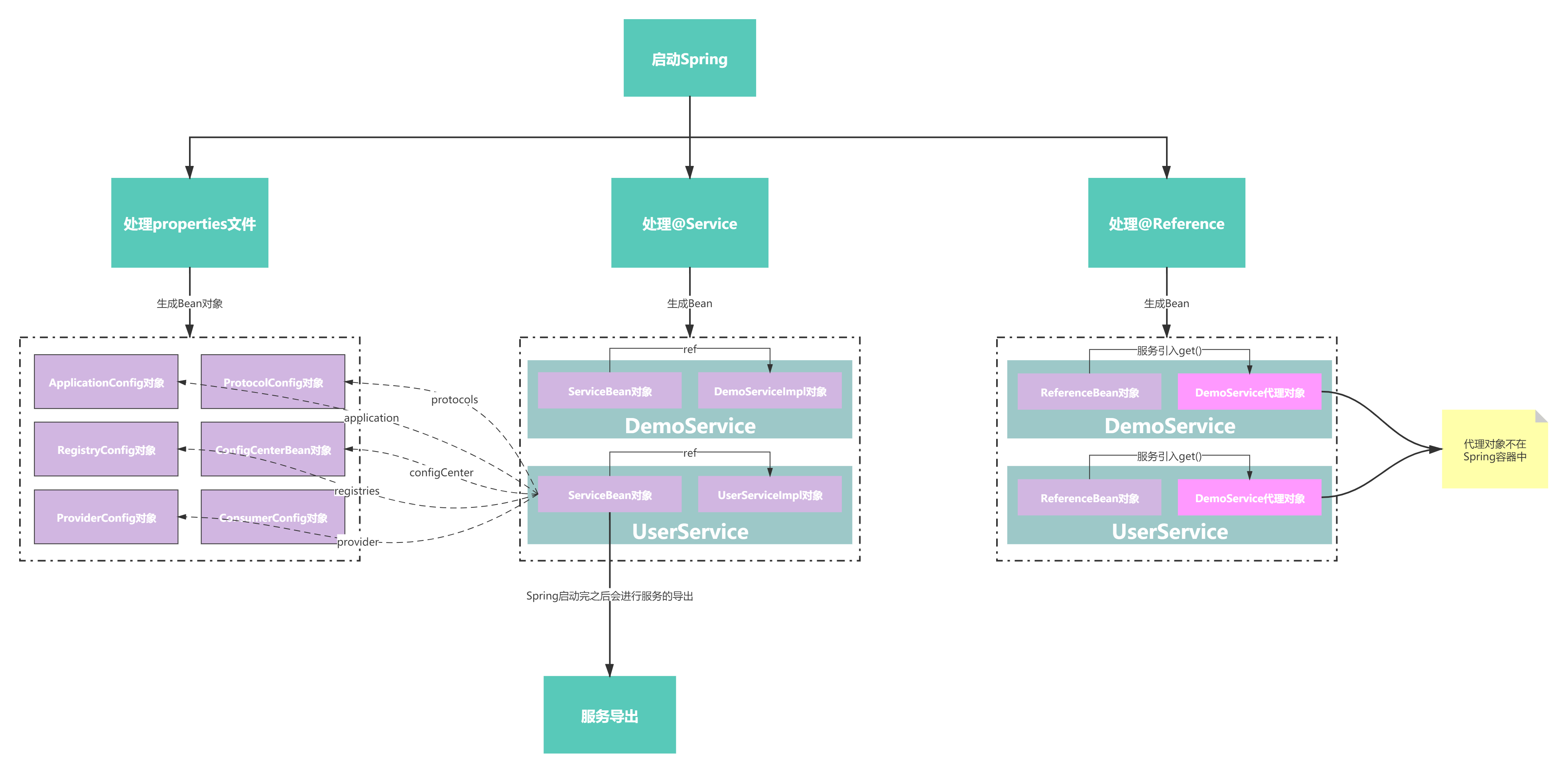 * 2.那么Spring启动的时候就会加载里面的配置到一些xxxConfig里面【Spring整合Dubbo的时候讲过】