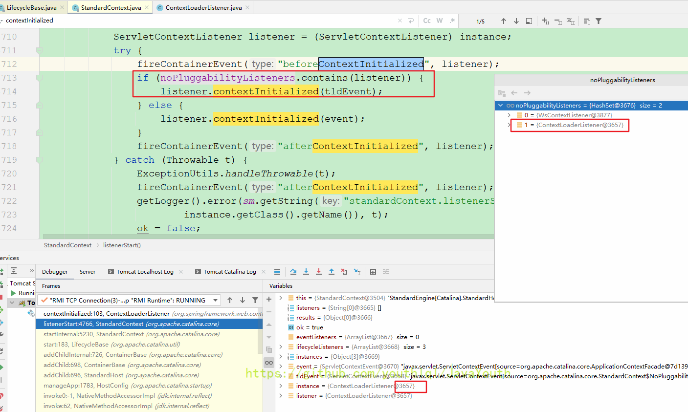 咱们就把那个监听器的初始化方法打个断点然后F8放行试试呗