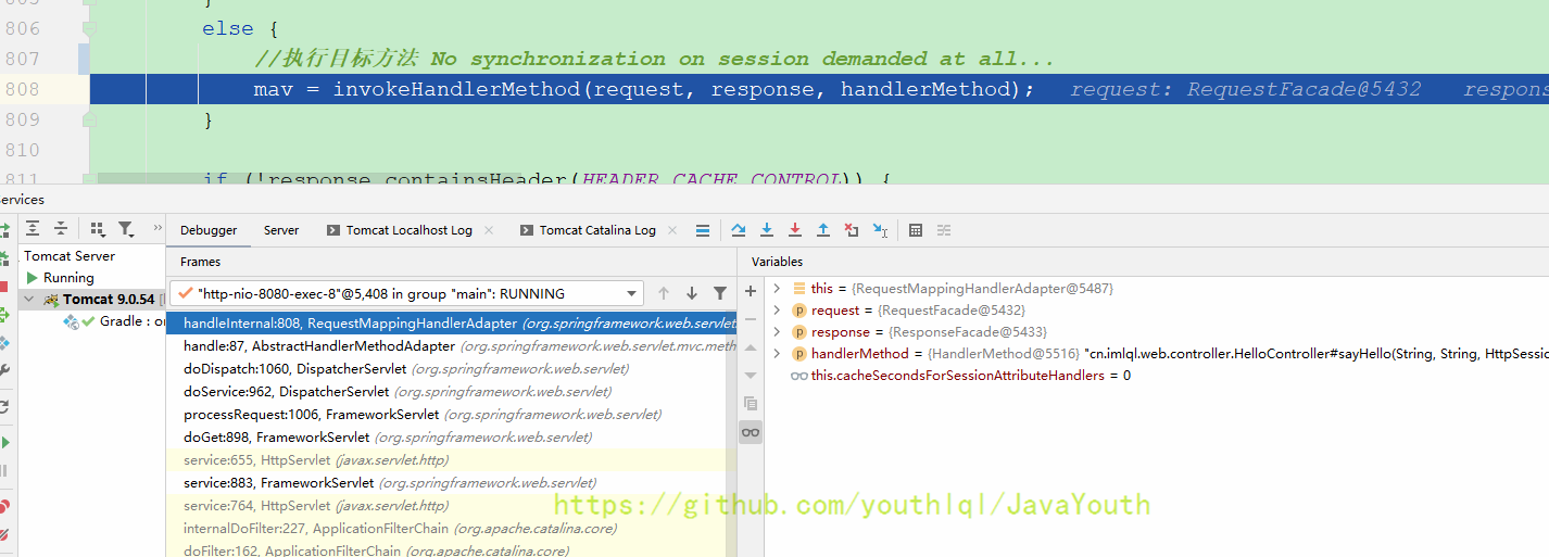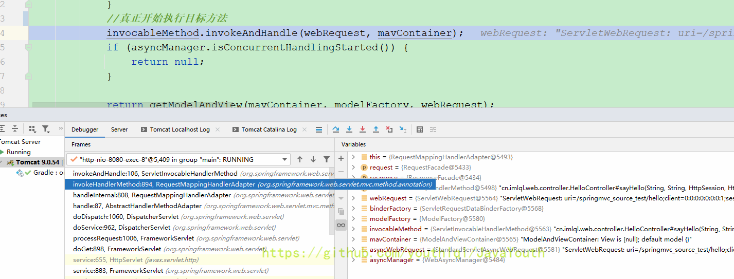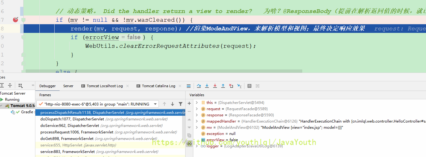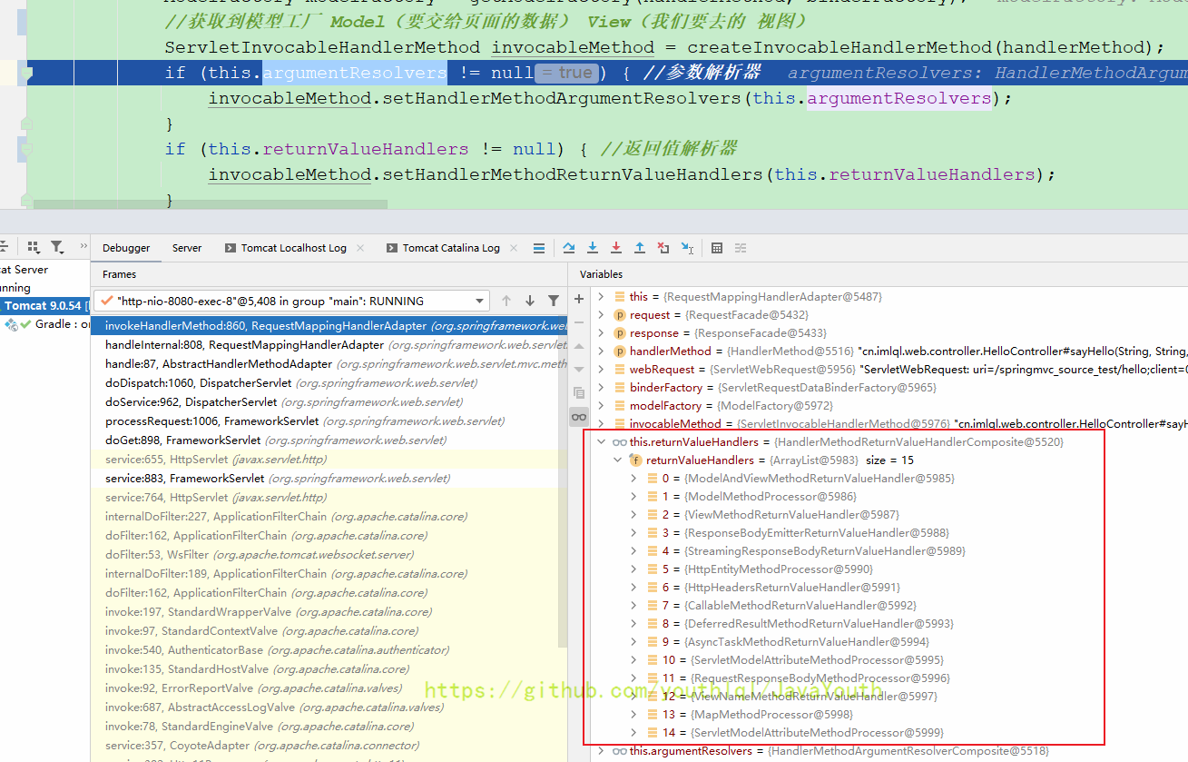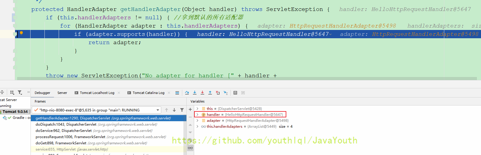 还是跟HandlerMapping一样继续Debug DispatcherServlet#doDispatch(HttpServletRequest, HttpServletResponse)