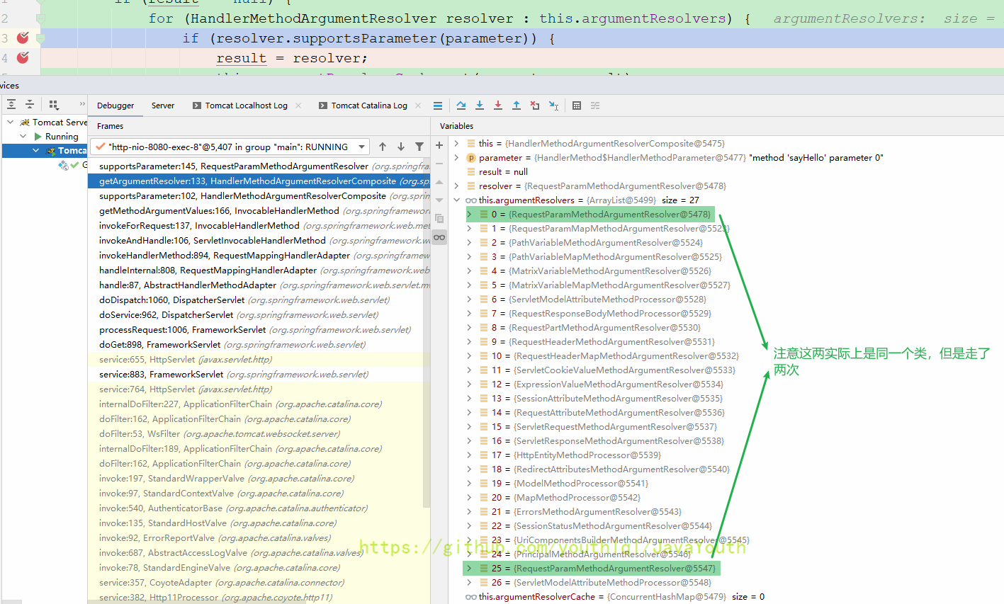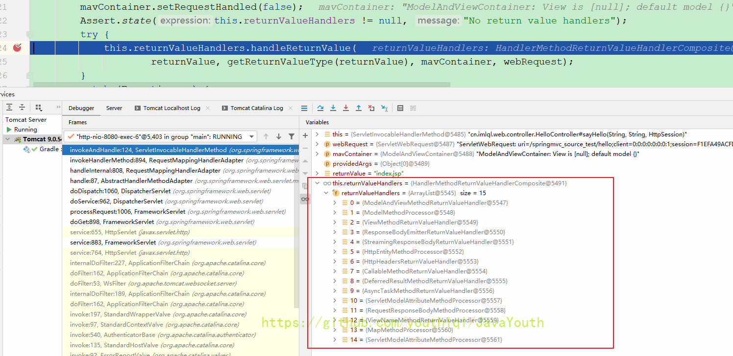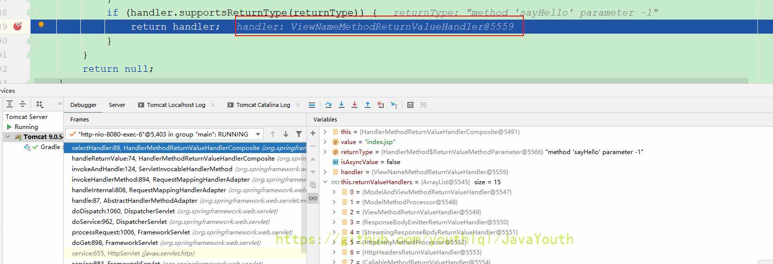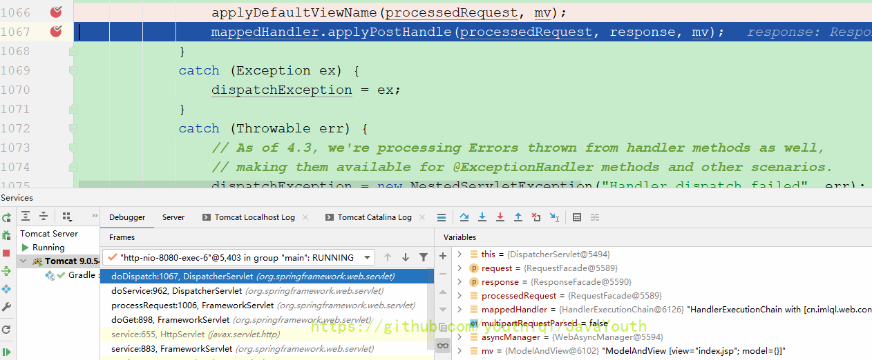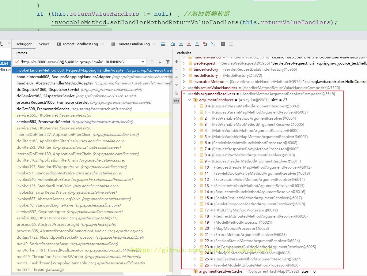 还是跟HandlerMapping一样继续Debug DispatcherServlet#doDispatch(HttpServletRequest, HttpServletResponse)