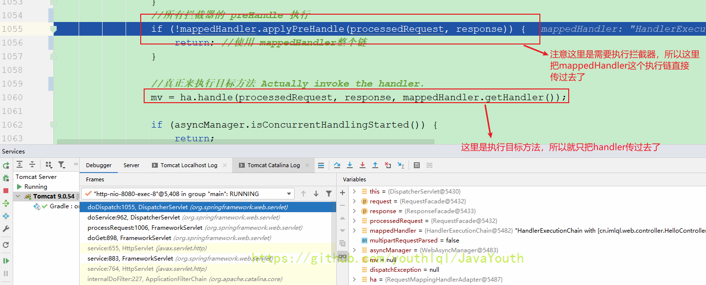 HandlerExecutionChain mappedHandler = null; //handler目标方法的执行链