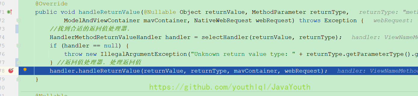 由于现在的前后端分离时代,我们直接返回视图的需求已经很少很少了。现在一般都是直接返回数据,所以视图解析器详细原理不再细述,后面就直接开始讲异常处理流程。