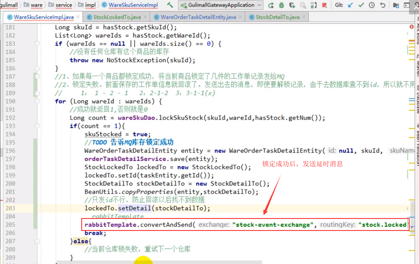 2.库存锁定成功的话,发送延时消息(假设延迟消息是40min)。