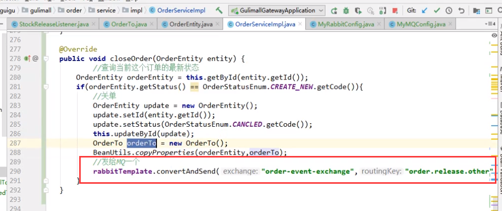 rabbitTemplate.convertAndSend("order-event-exchange", "order.create.order", order.getOrder());