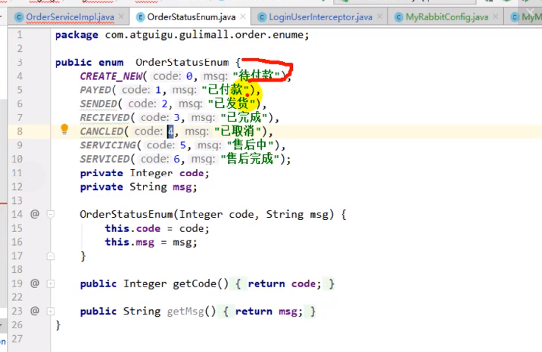 创建订单之后30min之内,若用户没支付,则需要将订单关闭,也就是将订单的状态改为已取消。40min后,则需要执行上面的延时队列解锁库存的操作。