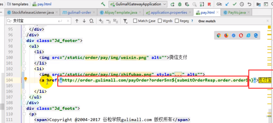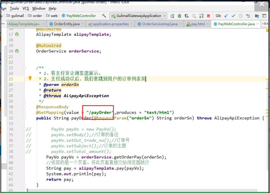 上面点击支付宝就会向这个Controller发请求,带上必要的数据之后,直接跳转到支付页面