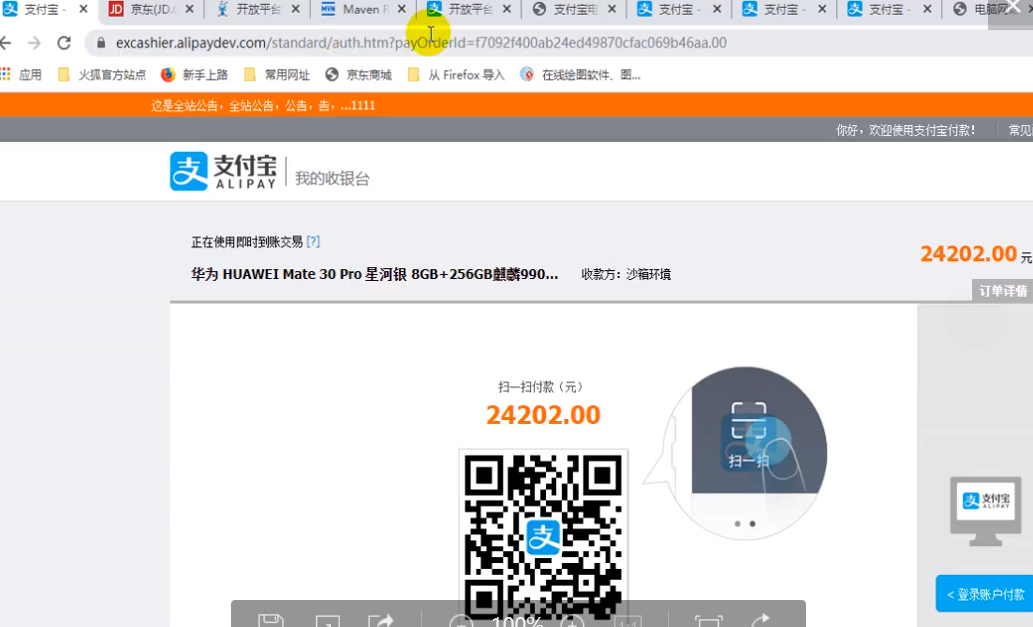 ②跳转到支付宝支付页面