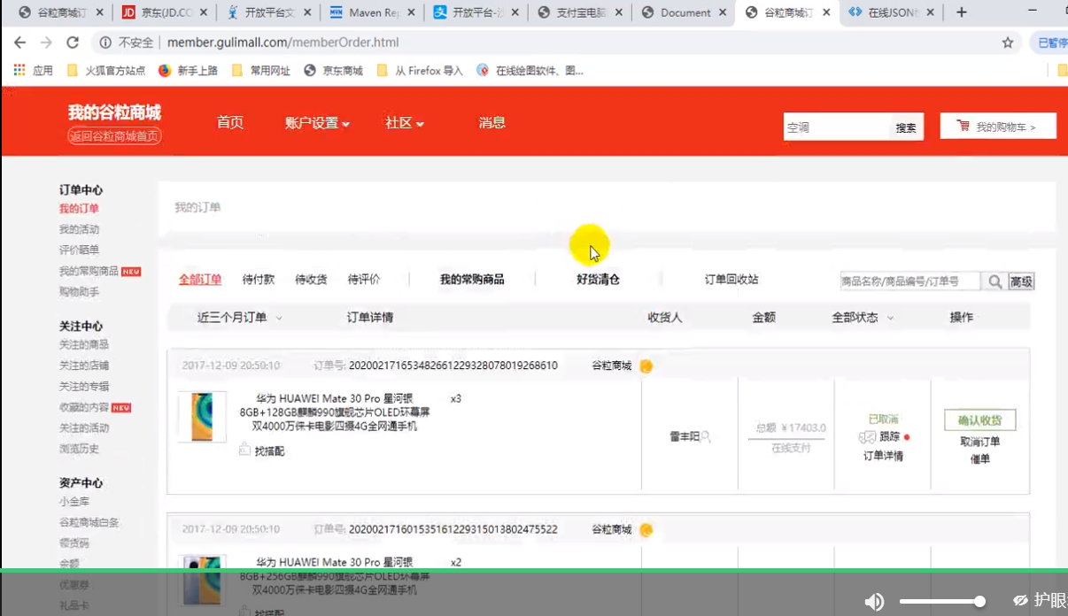 ③跳转到我的订单页(同步回调页面)